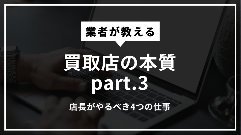 買取店の店長が本当にやるべき4つの仕事|ヤフオク&卸先開拓に翻弄せよ 買取店の店長が本当にやるべき4つの仕事|ヤフオク&卸先開拓に翻弄せよ 店長が一日中、査定カウンターに座っている——そんな買取店を、私は何店舗も見てきました。 お客様が来れば査定... -